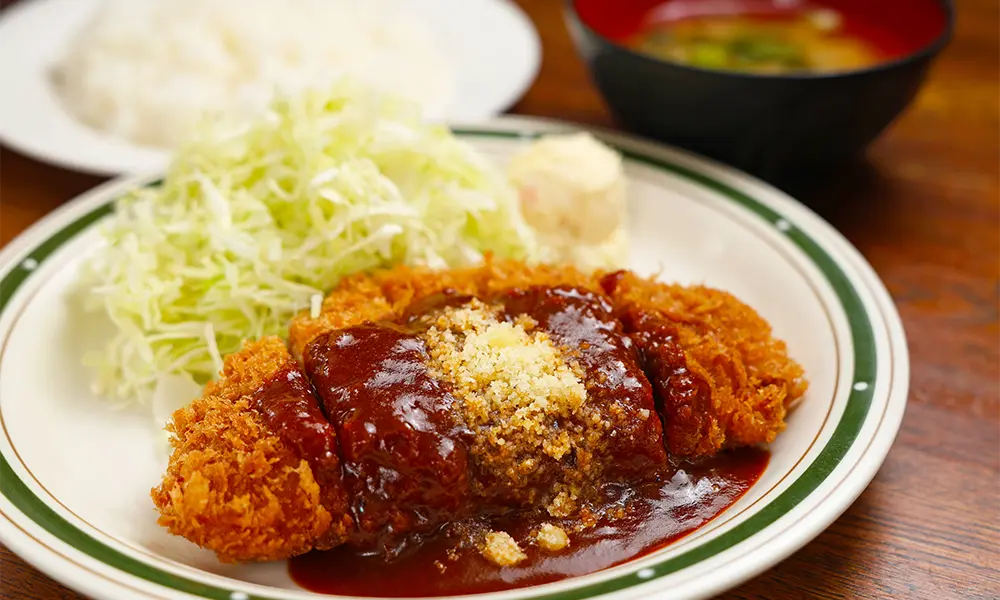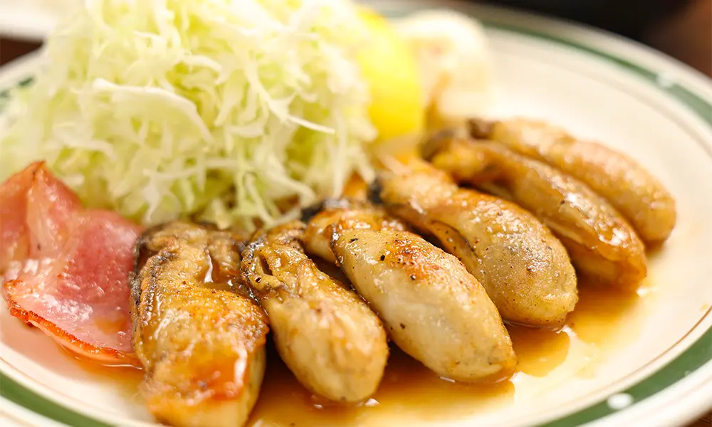 もう一軒、四ツ谷エリアで行列の絶えないお店が洋食店「かつれつ 四谷たけだ」です。やわらかな熟成もちぶたロースを特製デミグラスソースで食べるポークかつれつ定食をはじめ、人気メニューはたくさんありますが、冬季限定牡蠣バター焼き定食は特に人気で数時間待ちになることも。ぷりっぷりの大粒牡蠣は、抜群の火入れで旨みが倍増。バターでソテーしてあるのでさらに風味豊かな味わいです。
